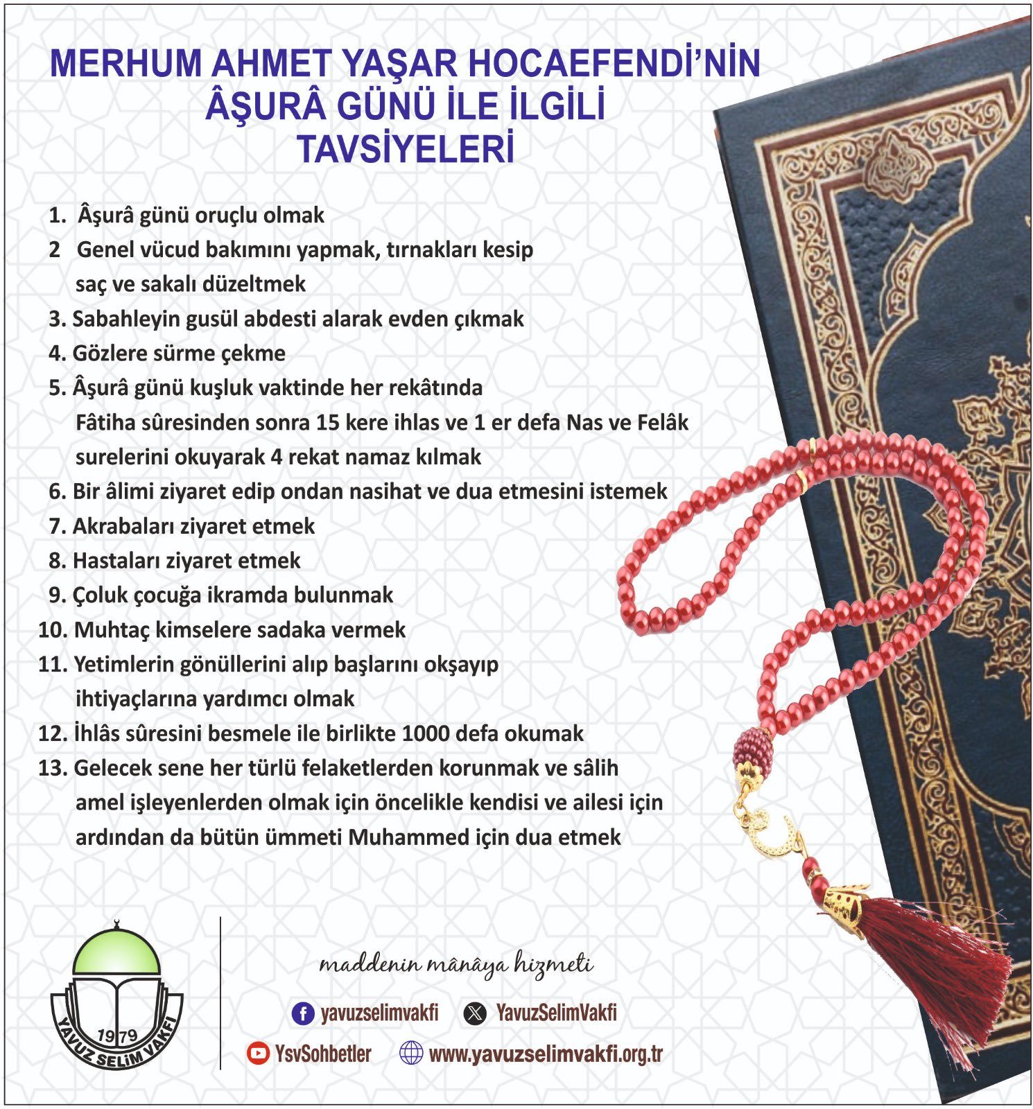 Merhum Ahmet Yaşar Hocaefendi'nin aşura günü ile ilgili tavsiyeleri